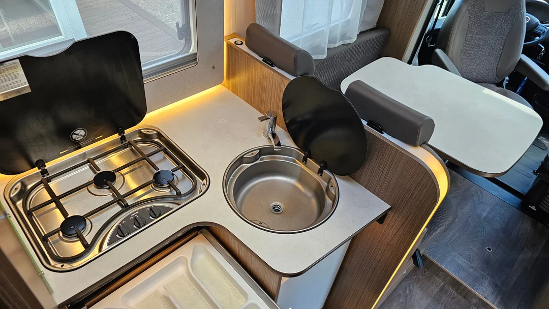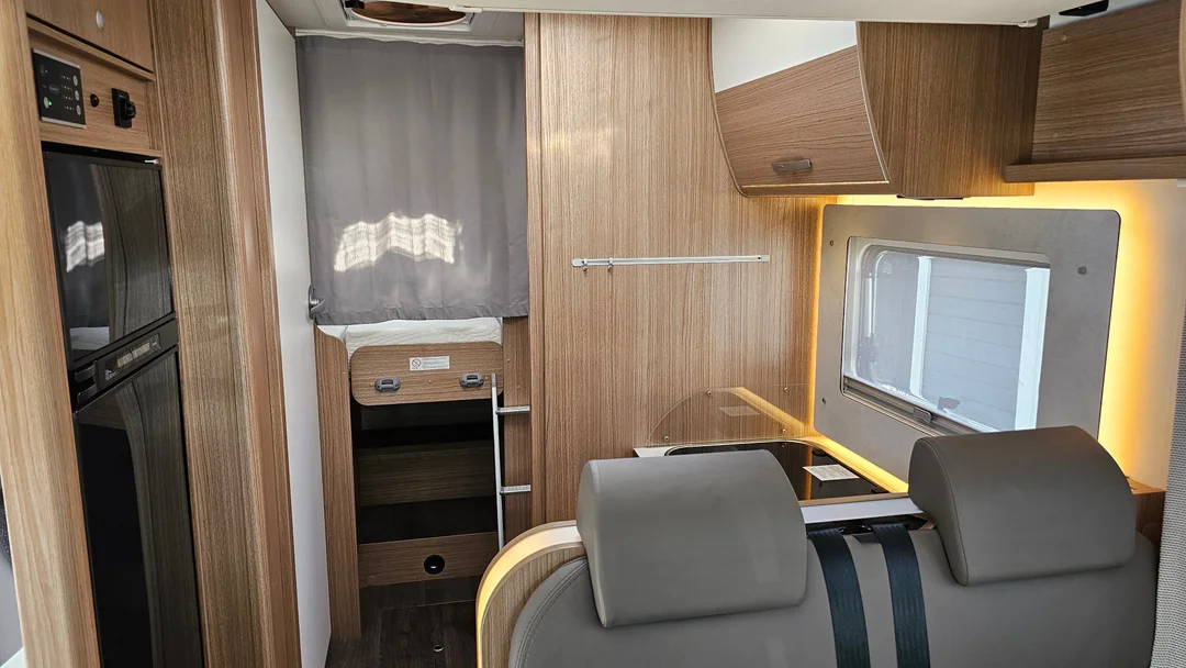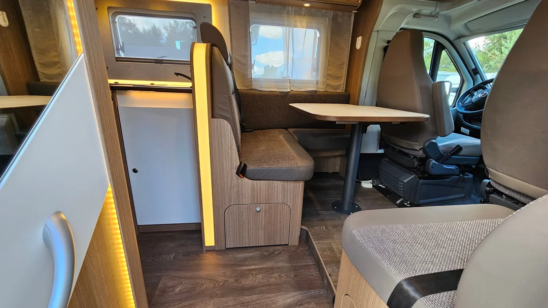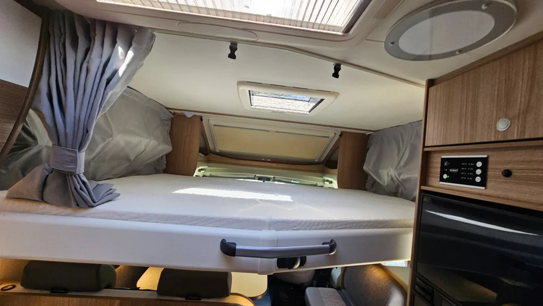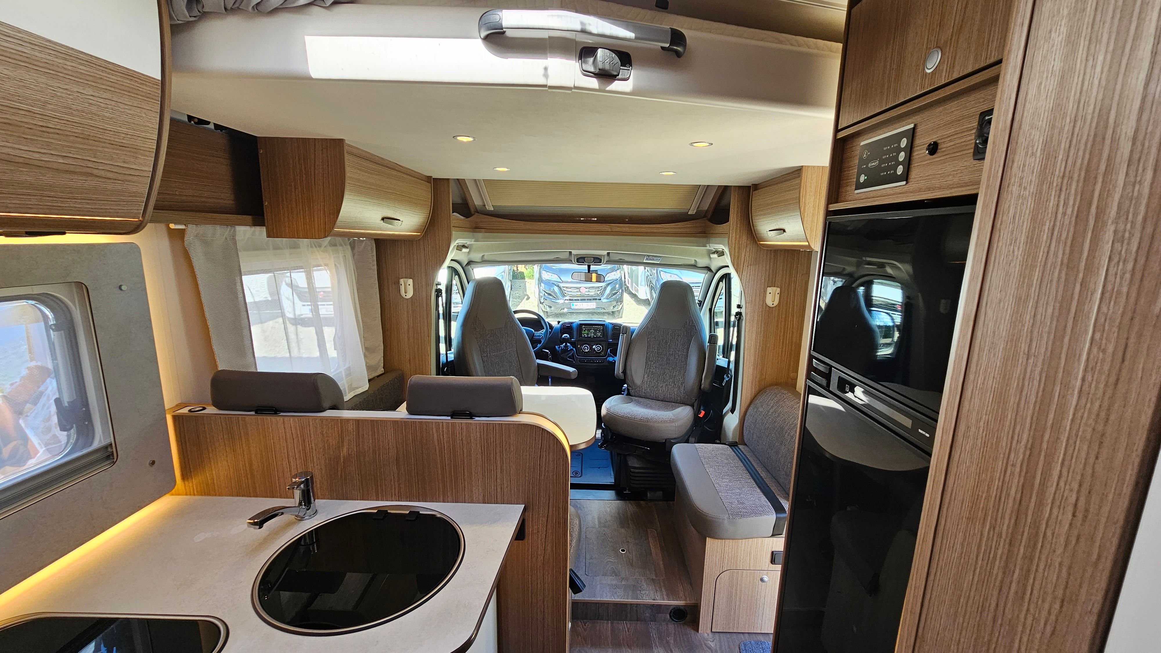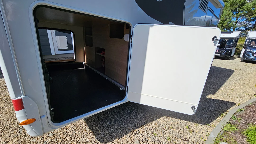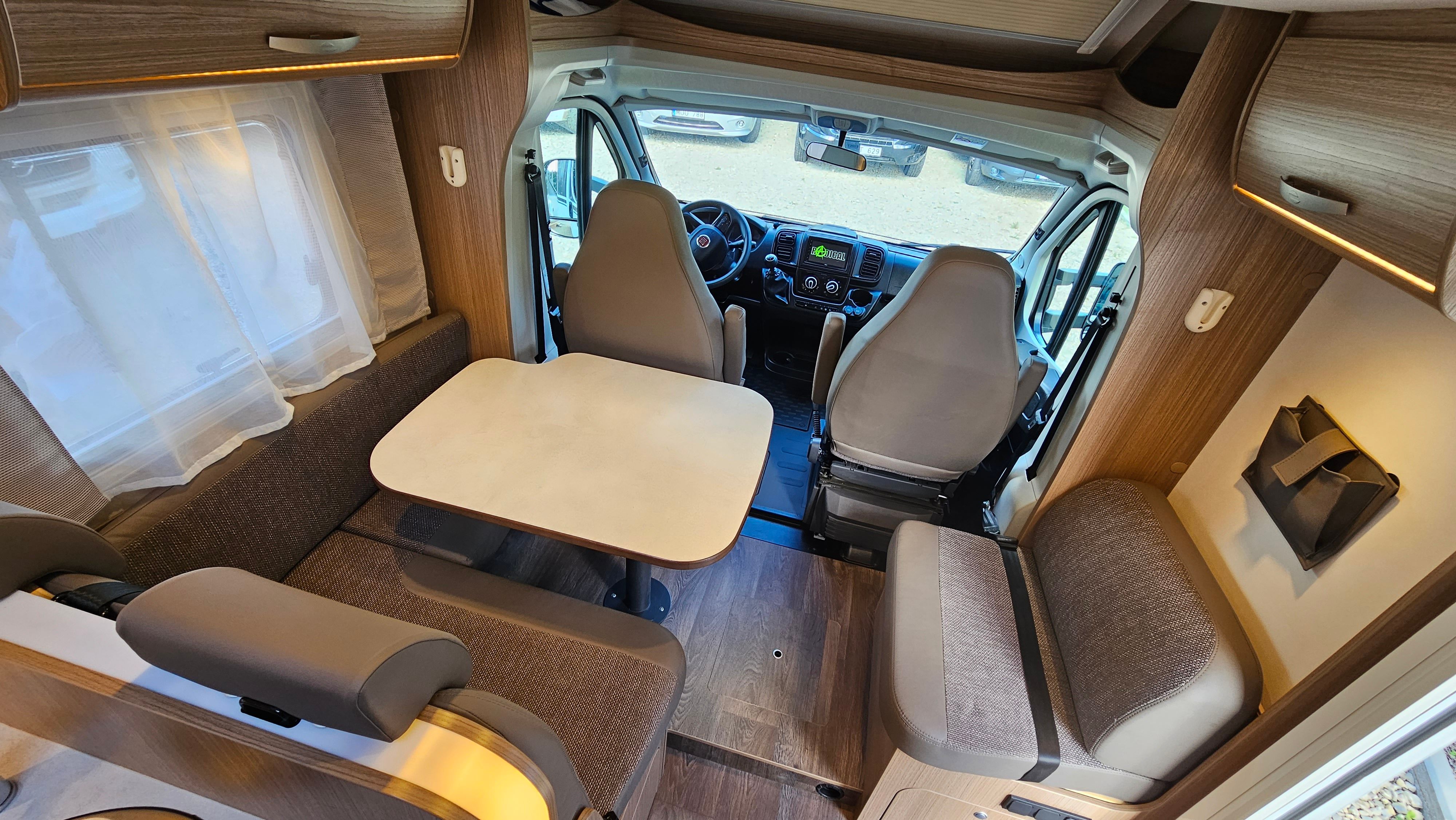 Komforto paketas: MEDIA aparatūra, atgalinio vaizdo kamera, navigacija, odinis vairas, elektra reguliuojami langai ir veidrodžiai, šaltų putų čiužiniai, didelis 145 l šaldytuvas, viryklė, transformuojamas dušas, kasetinis WC, 4m pločio markizė, erdvus garažas su durim iš abiejų pusių, kondicionierius, dujinis šildymas ir vėdinimas su temperatūros palaikymu, apsisukančios sėdynės, nuo lubų nuleidžiama lova, tinkleliai ant langų, stoglangių ir durų, panoraminiai stoglangiai, plačios įėjimo durys, LED apšvietimas