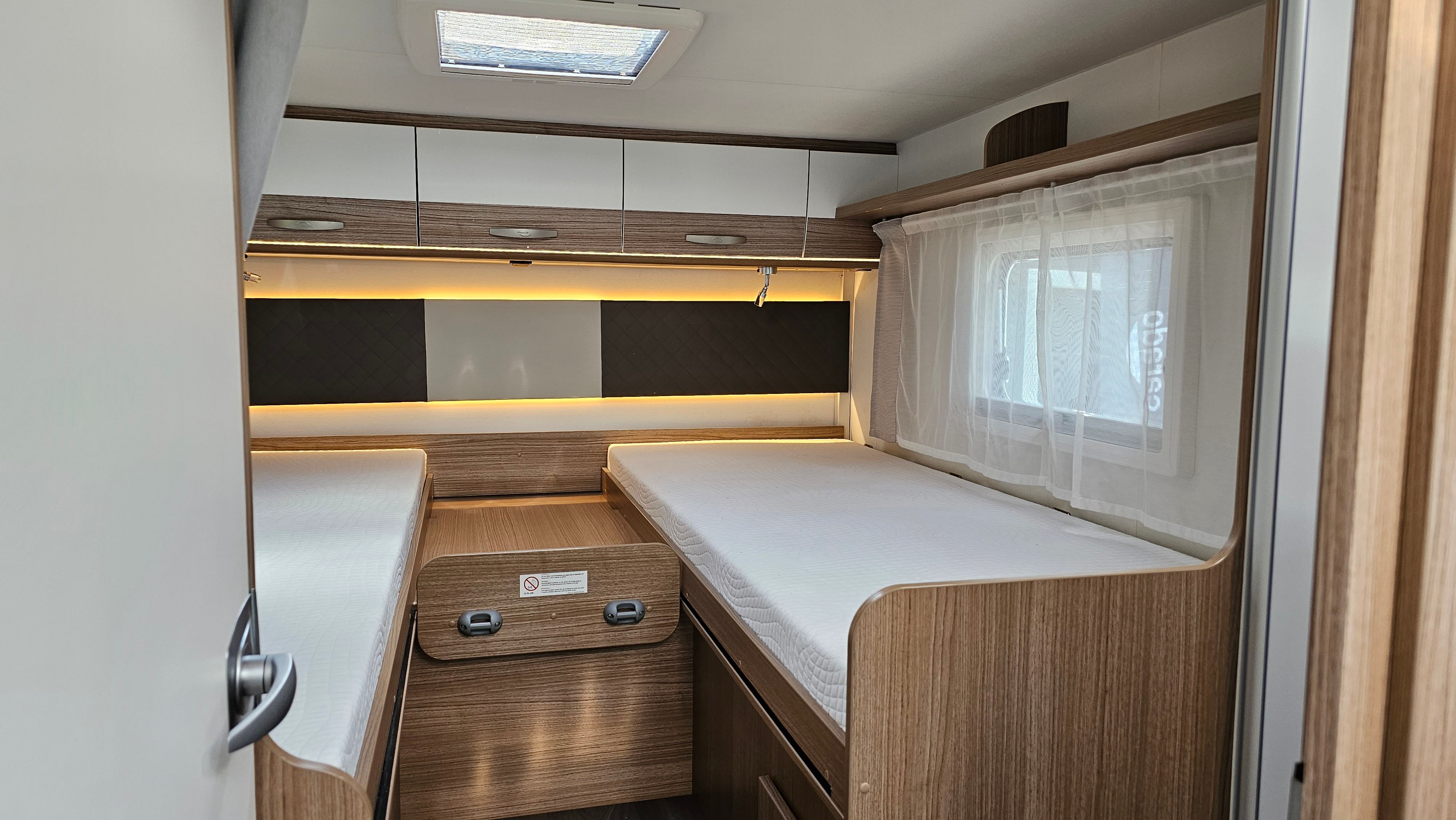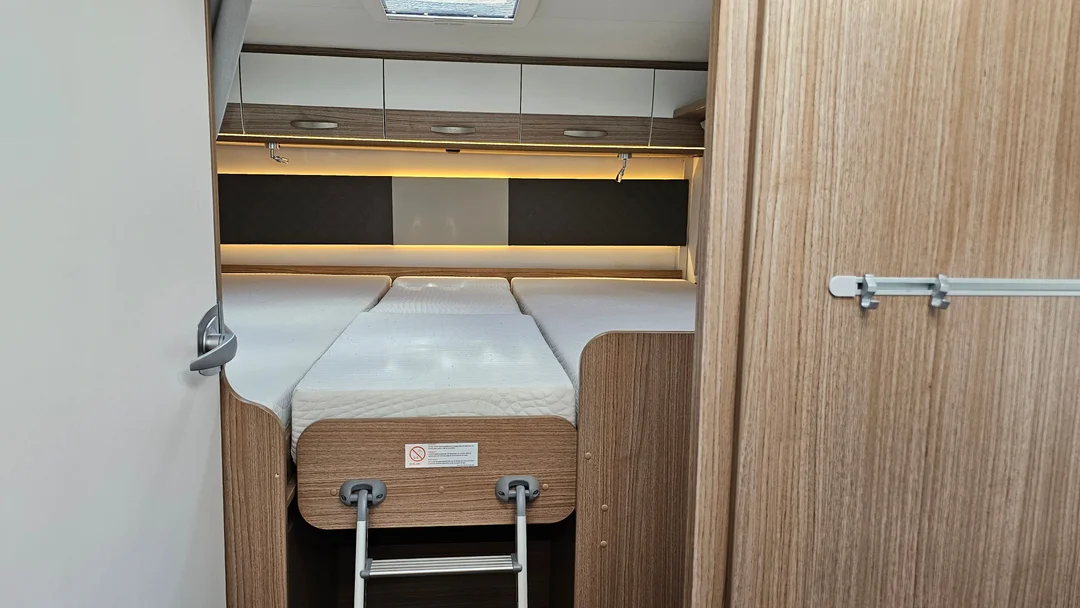 Naujausias Burstner modelis. Tikrų 6 registruotų ir miegamų vietų. Gale dviaukštė lova vaikams, priekyje dvigulė lova ir iš stalo formuojama lova