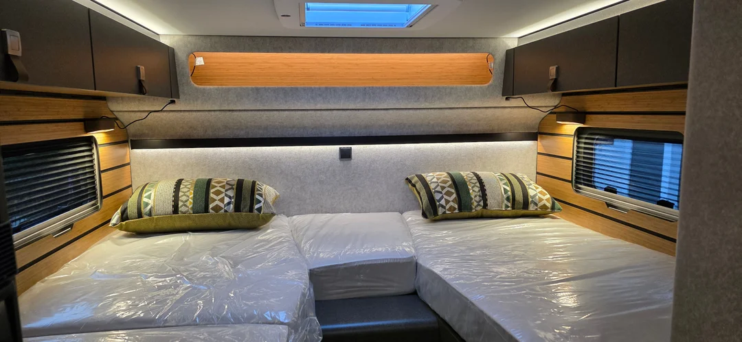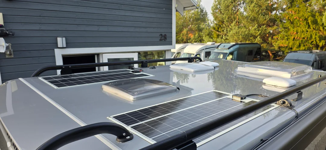 4X4 varančių ratų, saulės baterijos, inverteris gamnantis 220v neprisjungus prie elektros, 4 ličio jonų baterijos 4X80 Ah ir daug kitos įrangos Jūsų nepriklausomam poilsiui.
