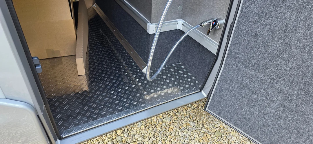 Perforuotos plokštės grindys bagažo patalpoje su veltinio apdaila